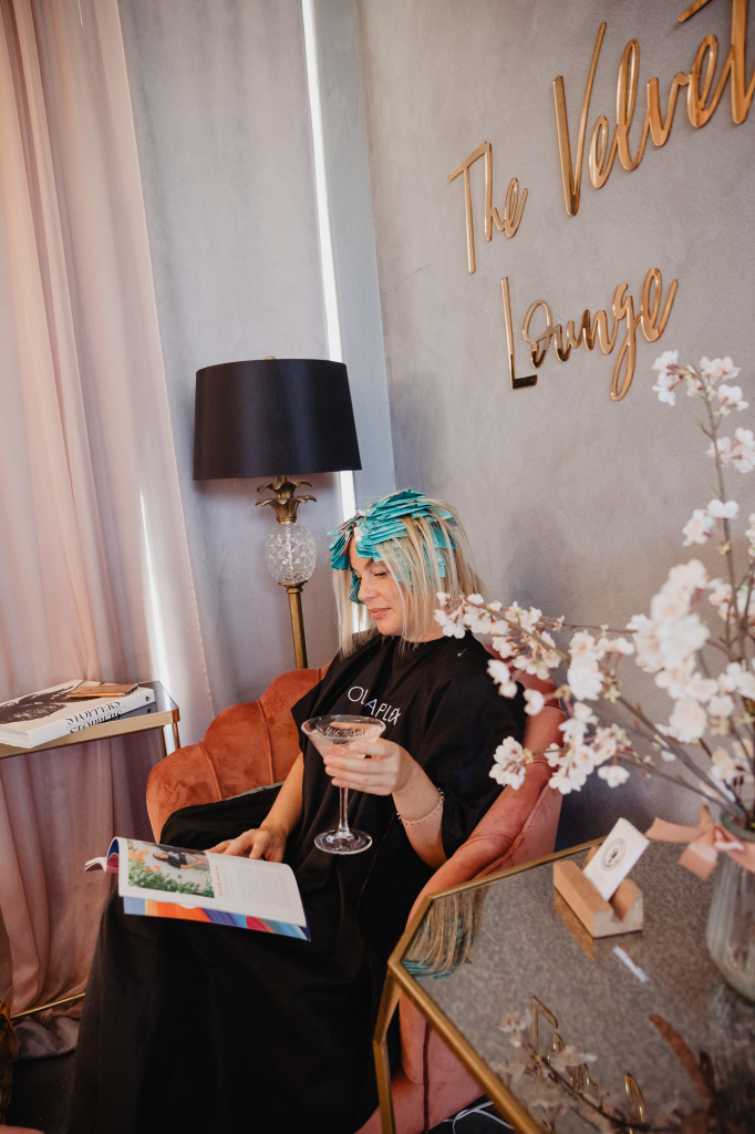 You will have access to our Velvet Lounge to relax in while waiting for your hair colour to process, which has a fully loaded snack bar, and a cocktail bar with everything from specialty coffees to cocktails.